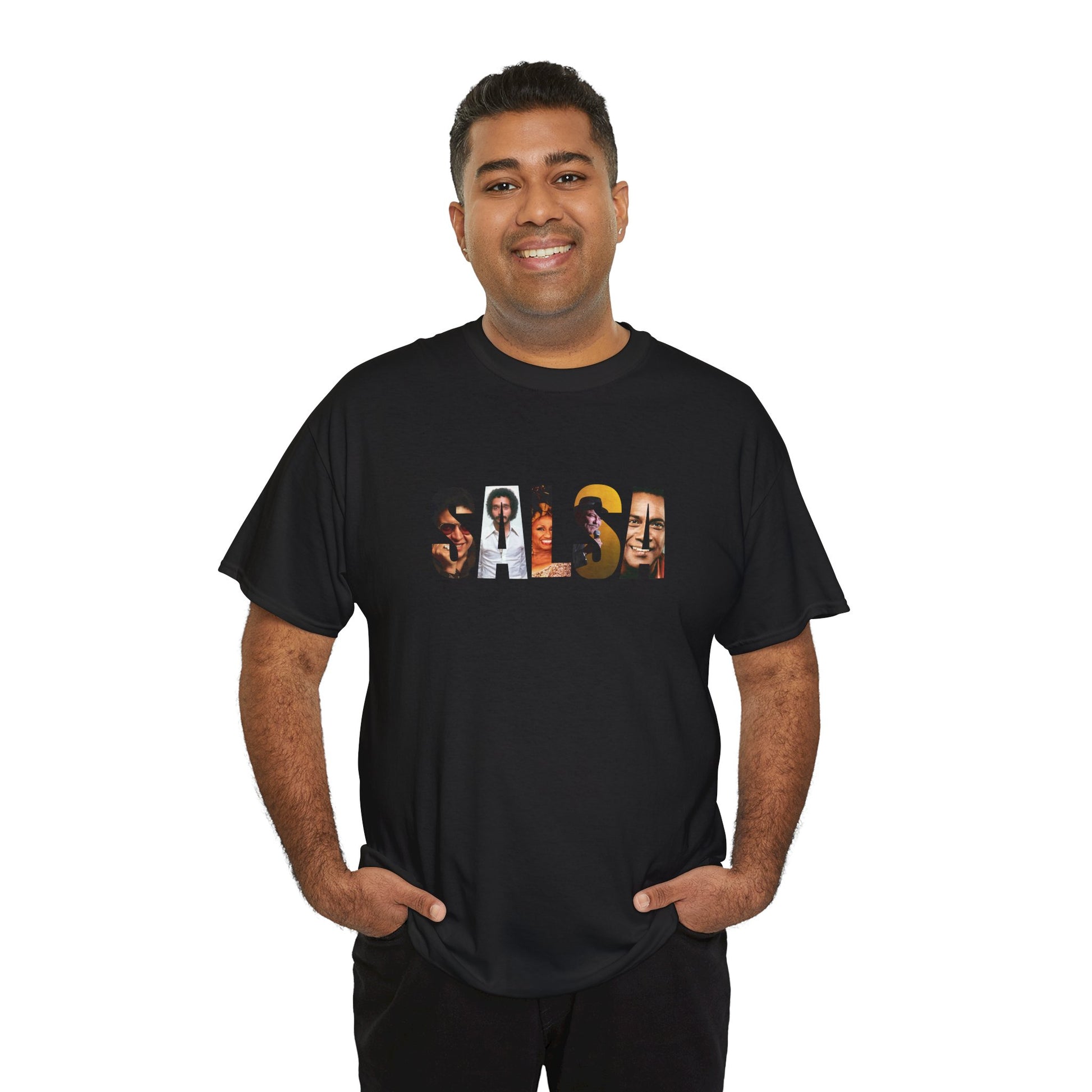Celebrate the legendary salsa music icons like Héctor Lavoe, Willy Colón, Celia Cruz, Rubén Blades, and Cheo Feliciano with this unisex heavy cotton tee. Made from specially spun fibers, this tee is not only strong and smooth but also sustainable and durable. The classic fit and crew neckline provide a comfy, timeless look that can be worn casually or semi-formally. Perfect for salsa music enthusiasts and fans, this tee is a great addition to any wardrobe, especially for music festivals, concerts, or casual gatherings.